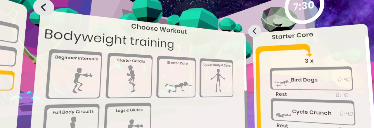 - Trainer avatar (trainer avatar demonstrates exercises)