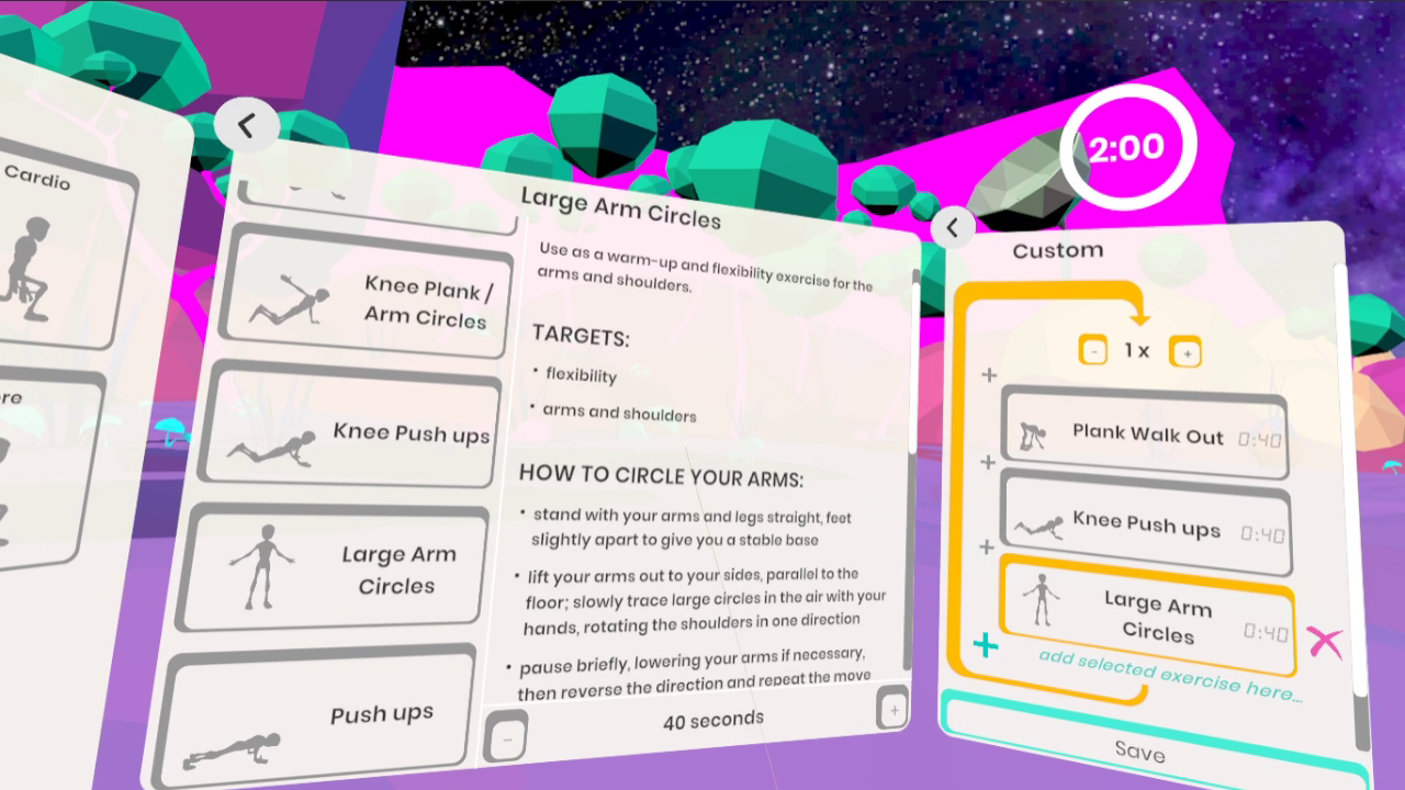 - Custom Workouts (ability to build custom workouts using any of the exercises/minigame in the library)