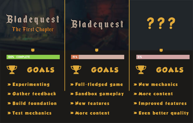 Bladequest: The First Chapter [GOLD] is a short, but highly atmospheric first person game experience, inspired by games like The Elder Scrolls, or the Gothic Series. It is called the “The First Chapter”, because it is one, in a series of games, created to directly test existing game mechanics in field and step by step craft an awesome game from your feedback! Watch the roadmap graphic for more information!