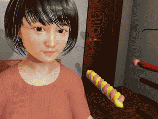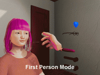Move like FPS game and interact with the girl using a virtual hand.