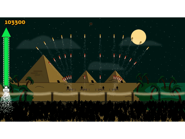Explode multiple rockets to increase the "Boom! Boom!" gauge.