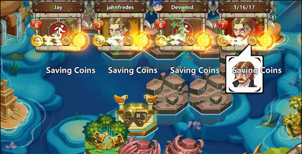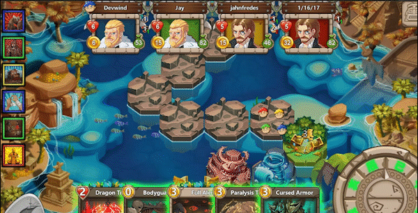 Unlike any traditional card dual combat, this game that is a perfect mix of an intense strategy TCG and a quick fun-filled board game. You play with 3 opponents on a lost island, each turn an random event will occur, it could be an attacking monster, a hidden treasure or a looming disaster, and you take advantage of them by using the cards in your deck. You win by having more coins than other players at the end of the match.Features