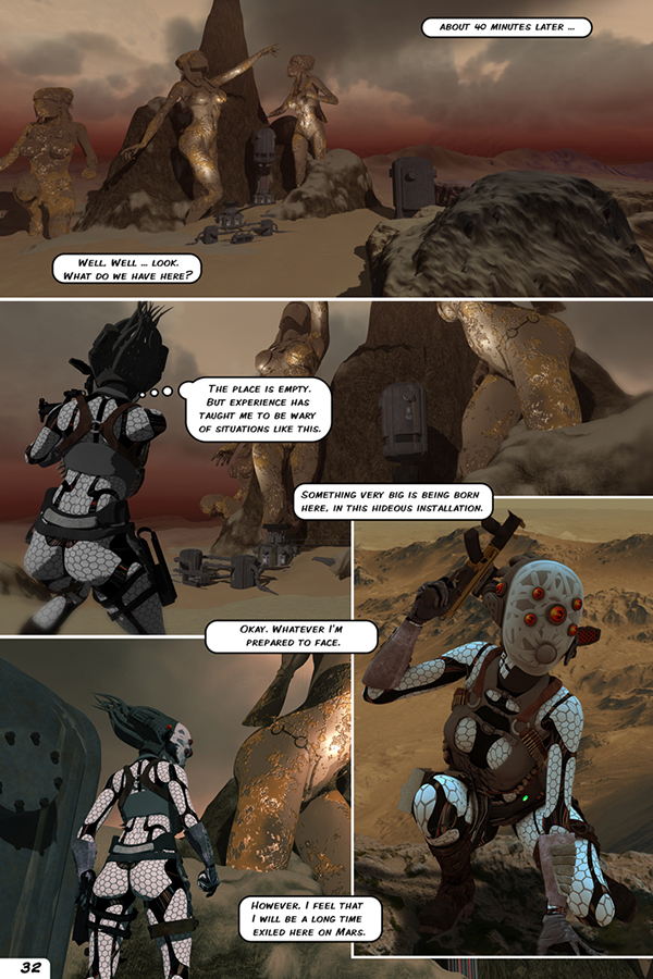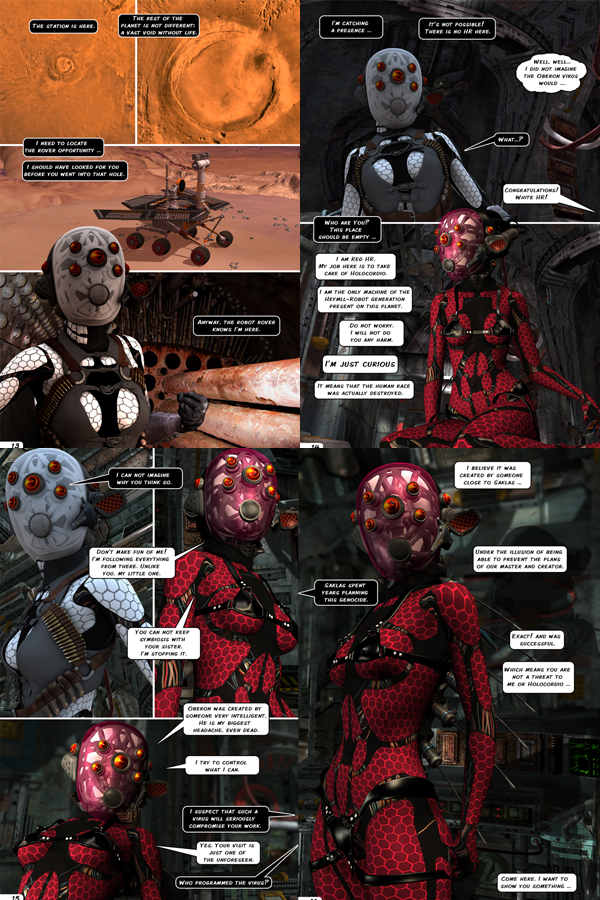 The story begins when an unknown form of virus kills almost the entire crew of international astronauts on Mars. Only one astronaut survives (Dr. Heymll Mark Thompson III). She doesn't know, but the killer synthetic virus is just following the guidance of a computer program that is doing the same thing on Earth. The program is called "Drilling in the Brain". She is alone on Mars, but will not be around for long. Soon, she will be visited by one of the most formidable robots created on Earth. This game is based on an animated TV series that is in post-production ( Episodes: Drilling in the Brain, Outcast on Mars).